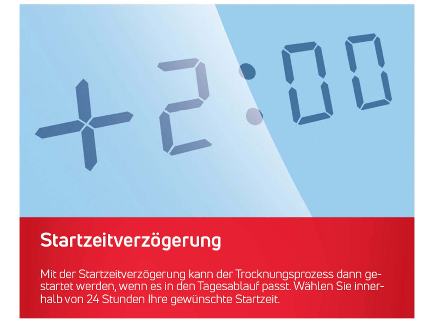 Startzeitvorwahl, Trocknunsgzeit, Trocknungsintensität, Innenbeleuchtung, Signal, Knitterschutz, Kindersicherung, Ein/Aus, Start/Pause