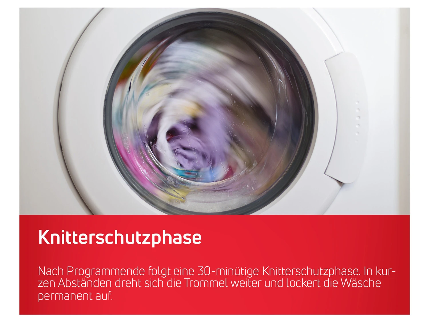 - Zusatzfunktionen: Startzeitvorwahl, 1 24 h, Knitterschutzphase nach Programmende, Kindersicherung