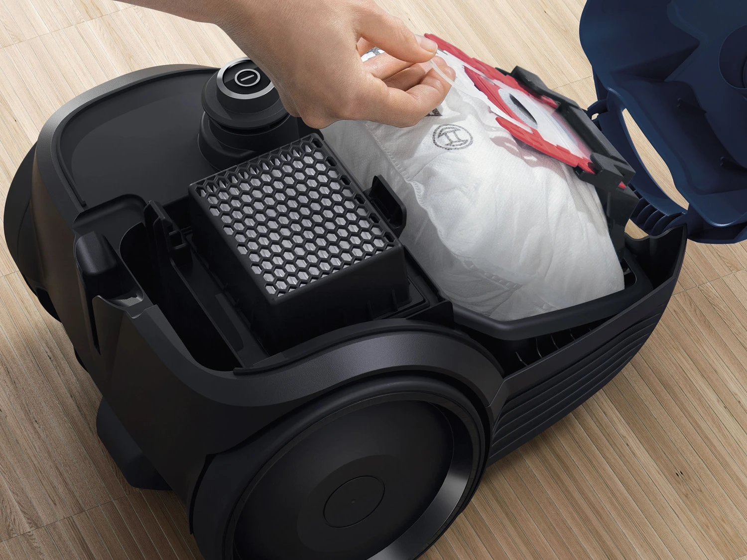 - BigCapacity: großes Staubbeutelvolumen trotz kompakter Gerätegröße – minimiert Staubbeutelwechsel und spart Folgekosten