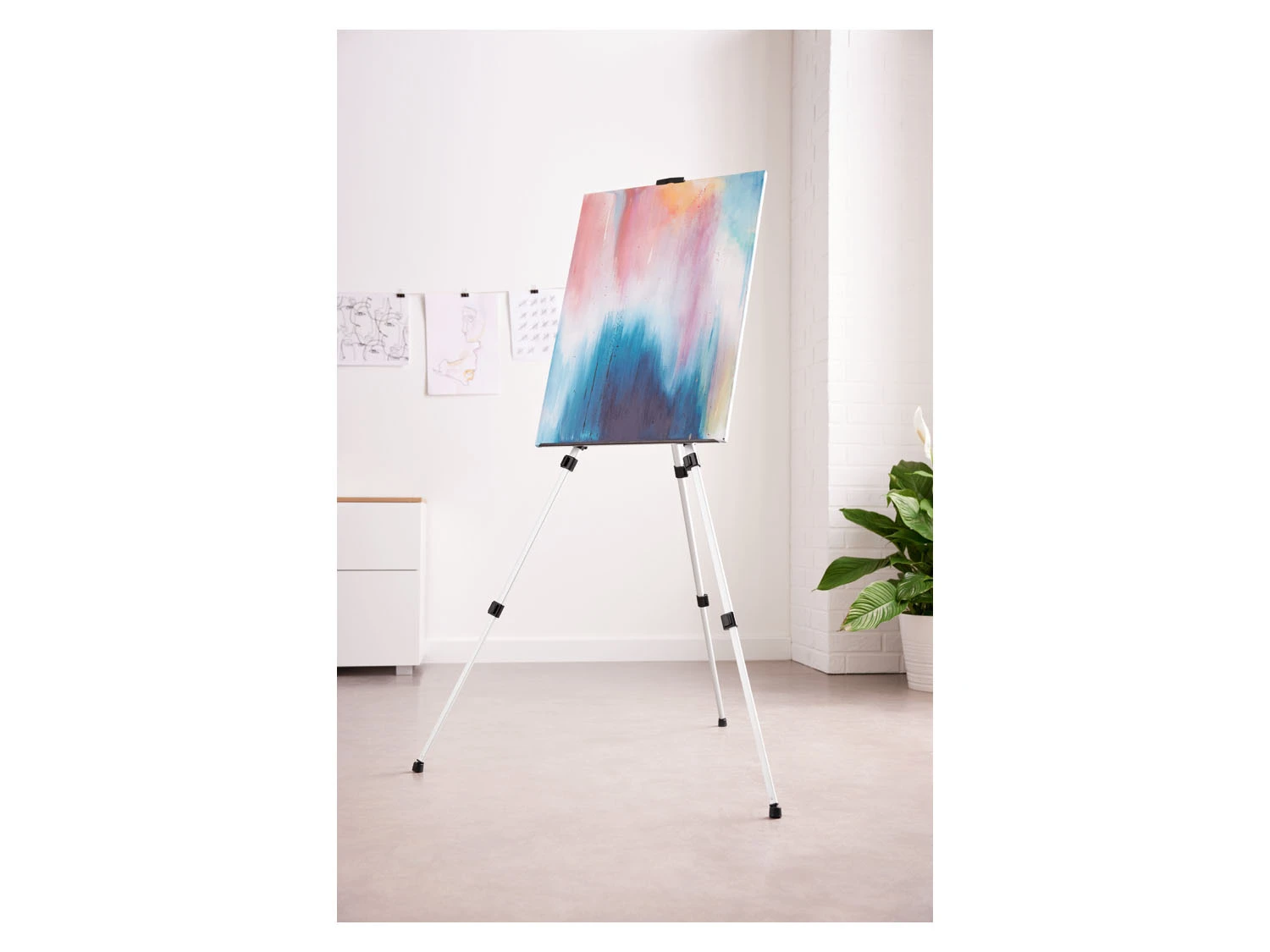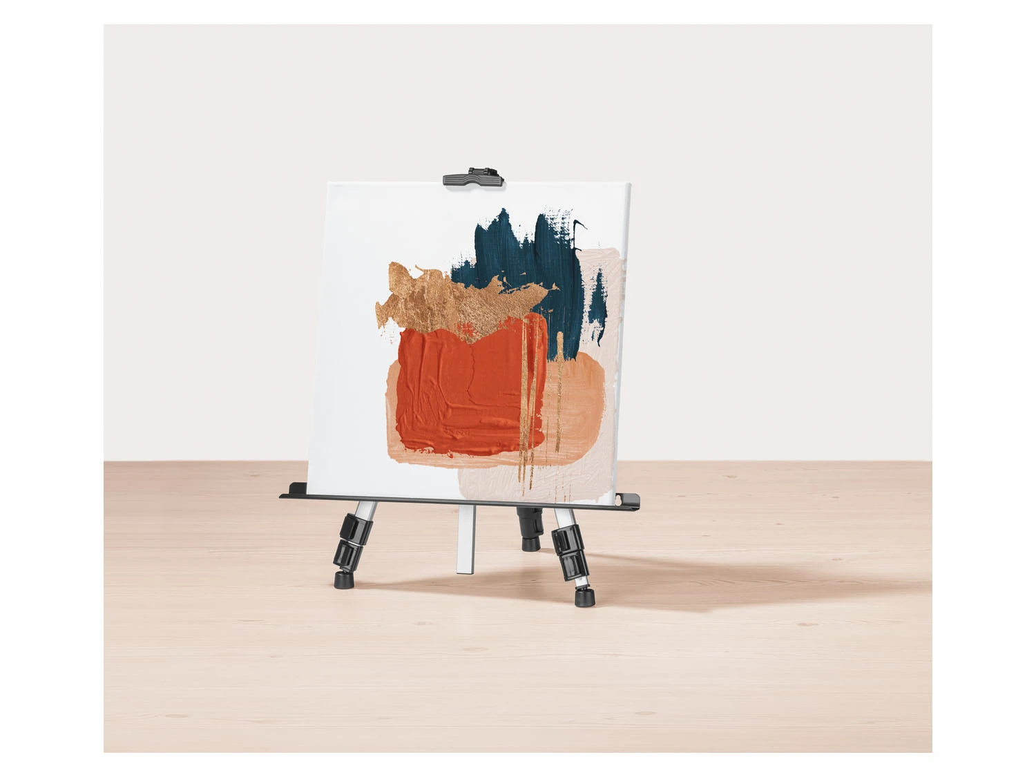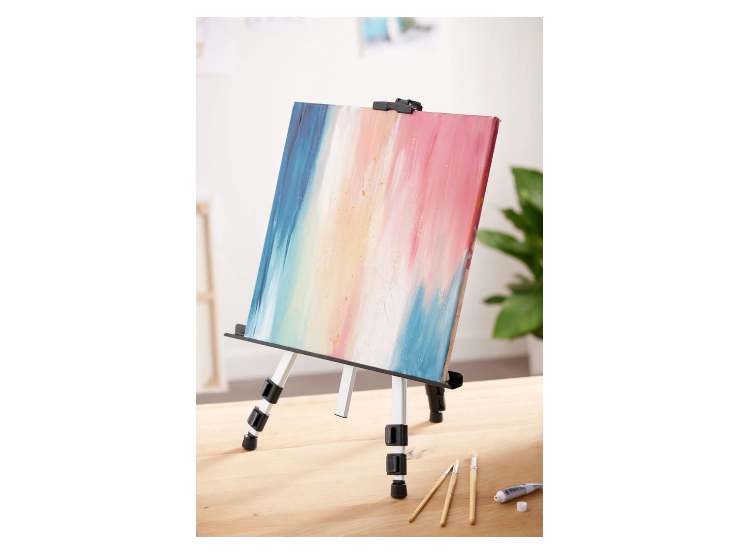 - Höhenverstellbare Teleskopbeine (44,5-115 cm) – auch als Tischstaffelei nutzbar