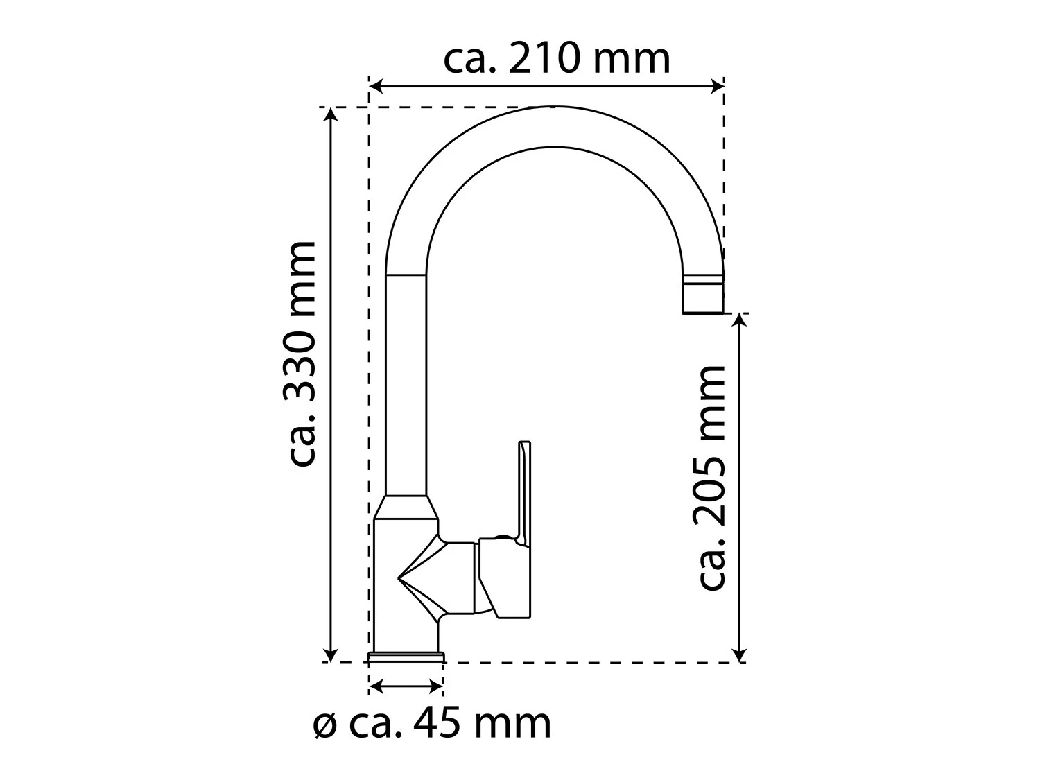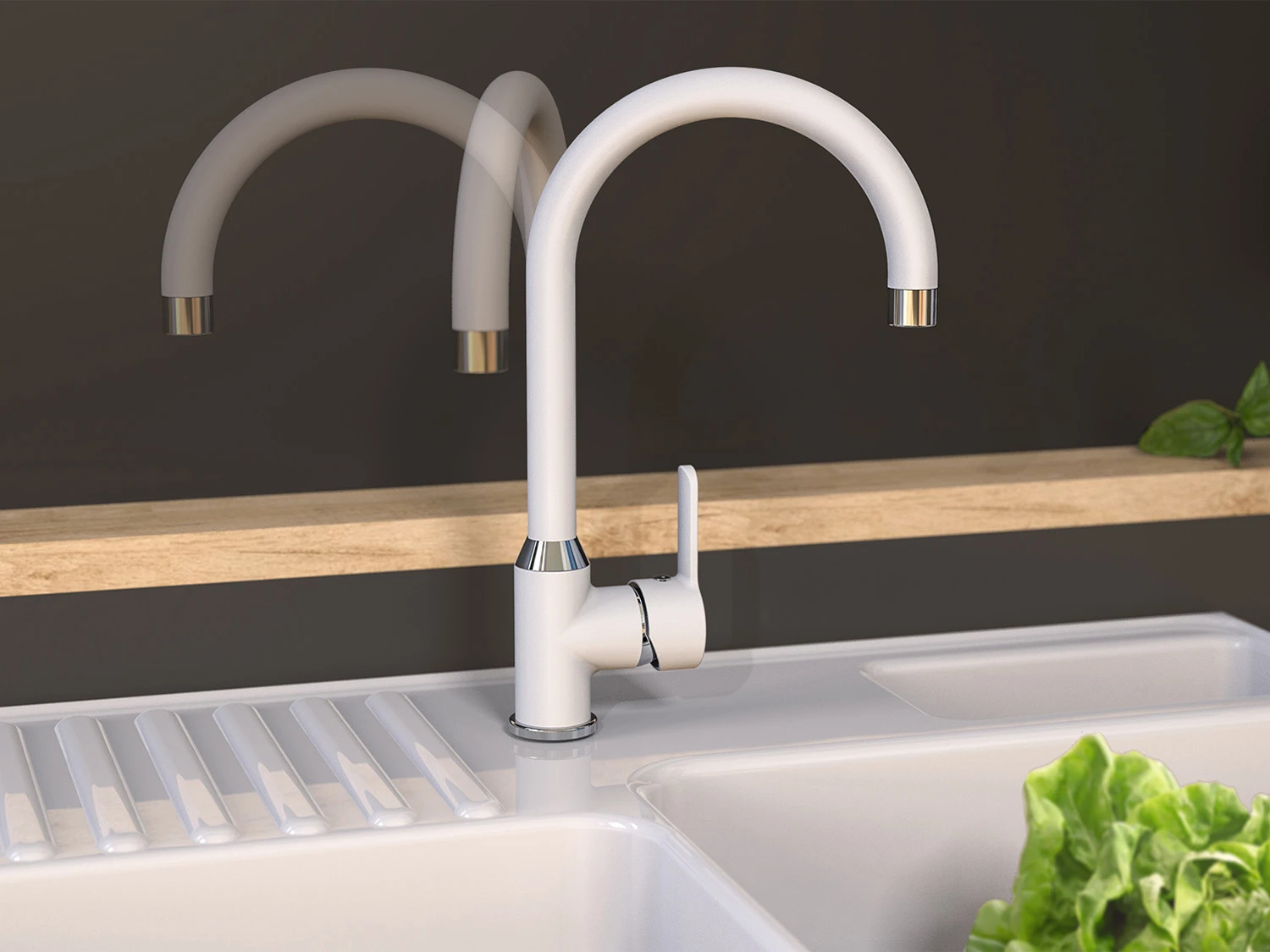 - Standarmatur mit drehbarem Auslauf und 360° Schwenkbereich für einen komfortablen Aktionsradius
