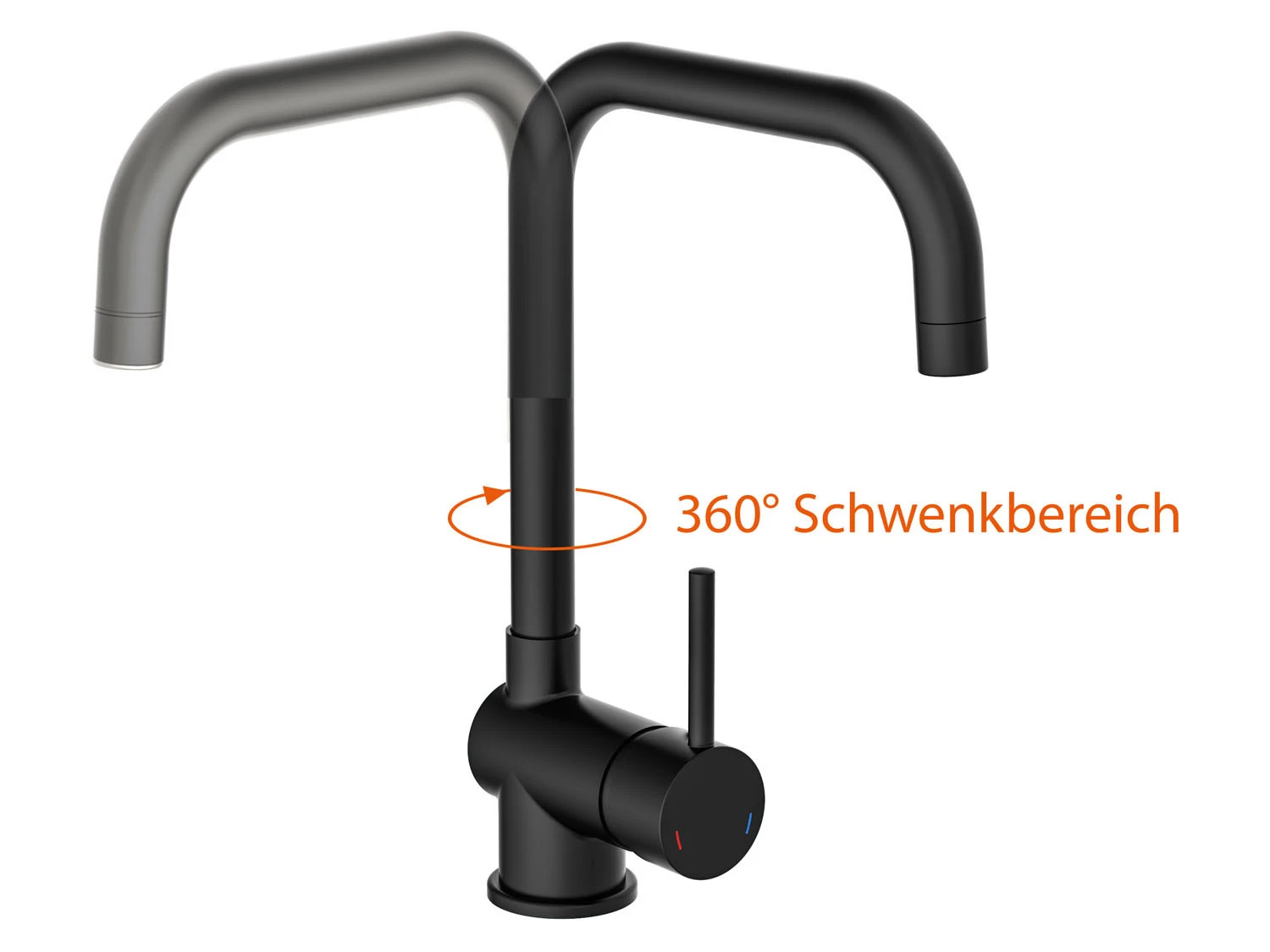 - 360 ° Schwenkbereich, ideal auch für Doppel-Spülbecken