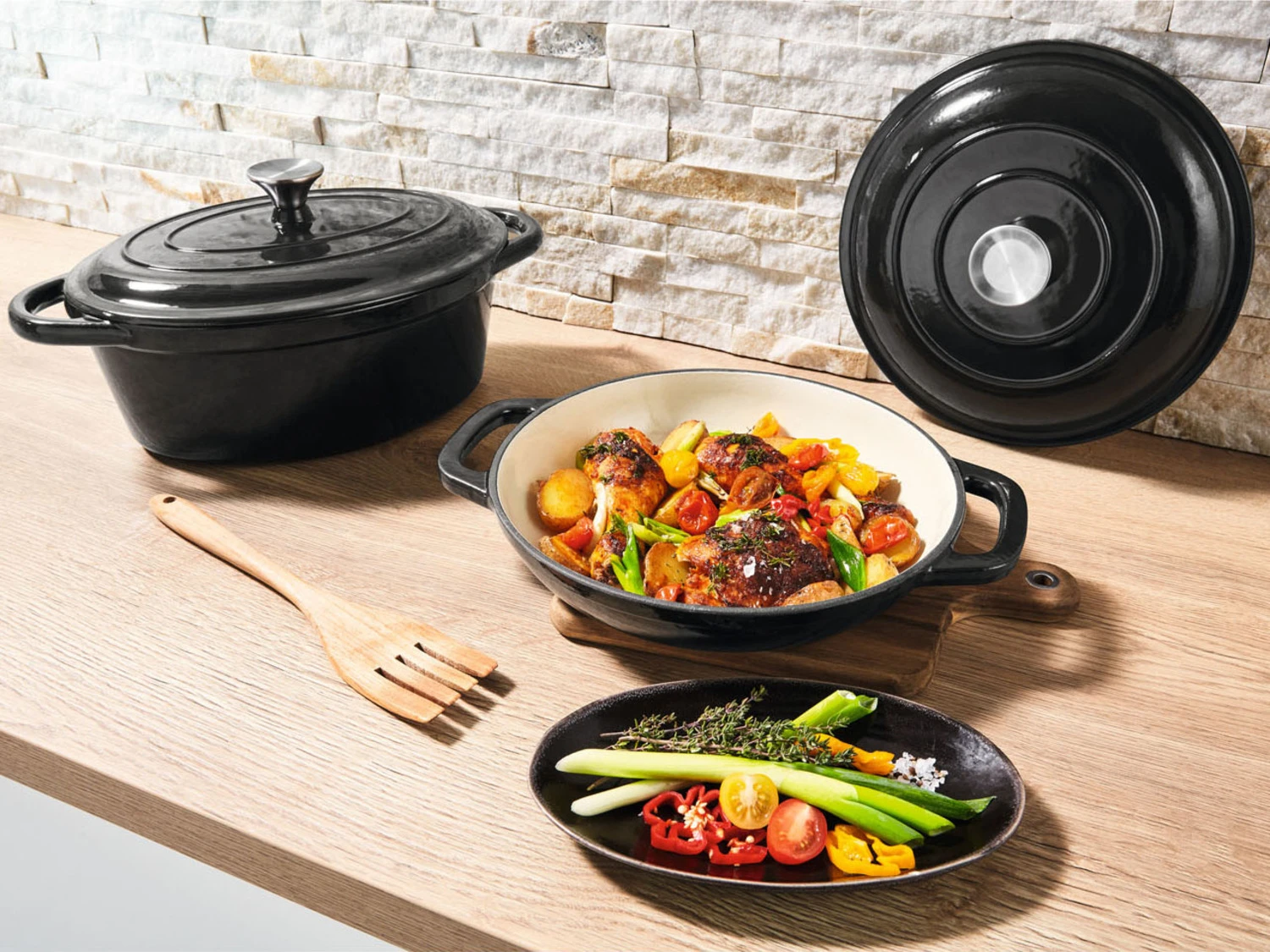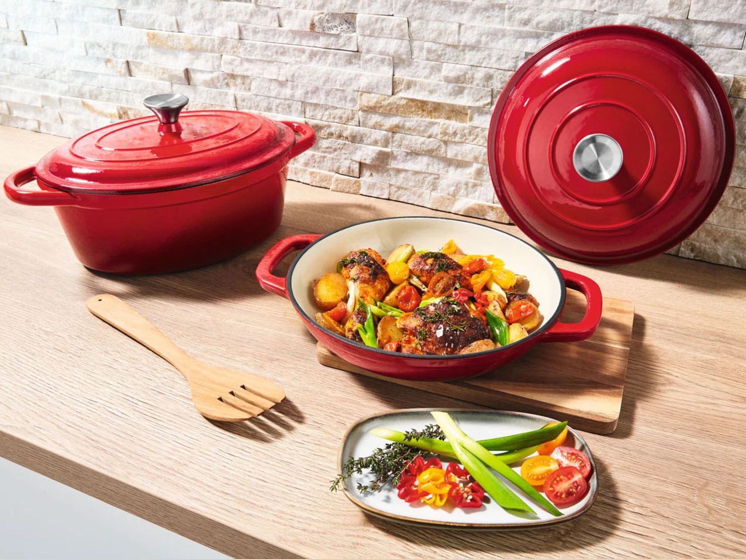 Mit unserer Gusseisen Kochgeschirr-Serie kannst du köstliche Aufläufe, Lasagne, Ofengemüse oder Braten zubereiten und servieren. Das Kochgeschirr ist innen und außen mit einer pflegeleichten und langlebigen Emaille-Beschichtung versehen, die für eine hohe Kratzfestigkeit und eine einfache Reinigung sorgt. Das Gusseisen sorgt für eine gleichmäßige Wärmeverteilung und eine sehr gute Wärmespeicherung, sodass deine Speisen lange heiß und saftig bleiben. Die Gusseisen-Auflaufform ist ein vielseitiger Küchenhelfer, mit dem du sehr lange Freude haben wirst.