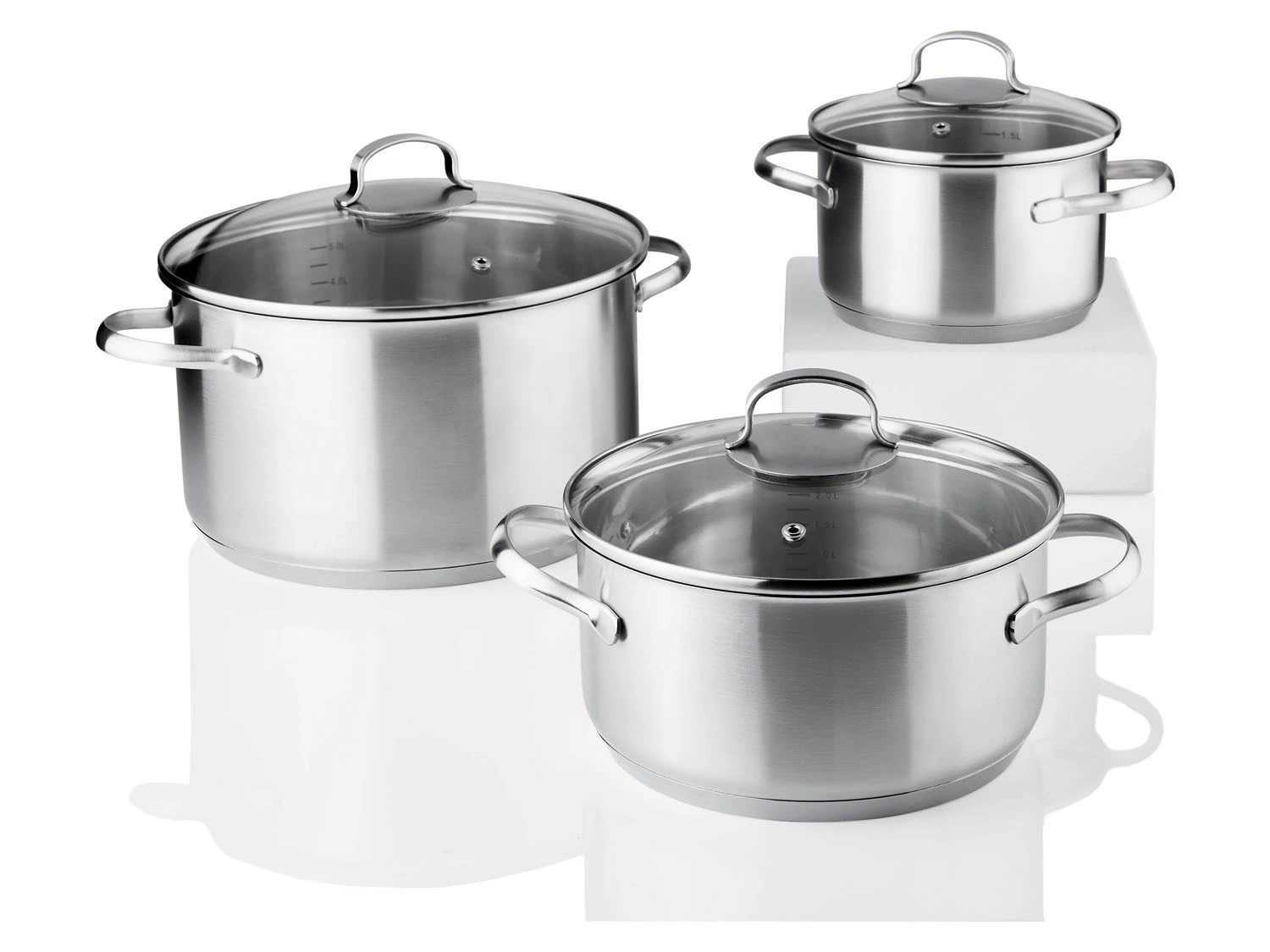 - 3 Töpfe mit Glasdeckel Ø 16, 20 und 24 cm:
