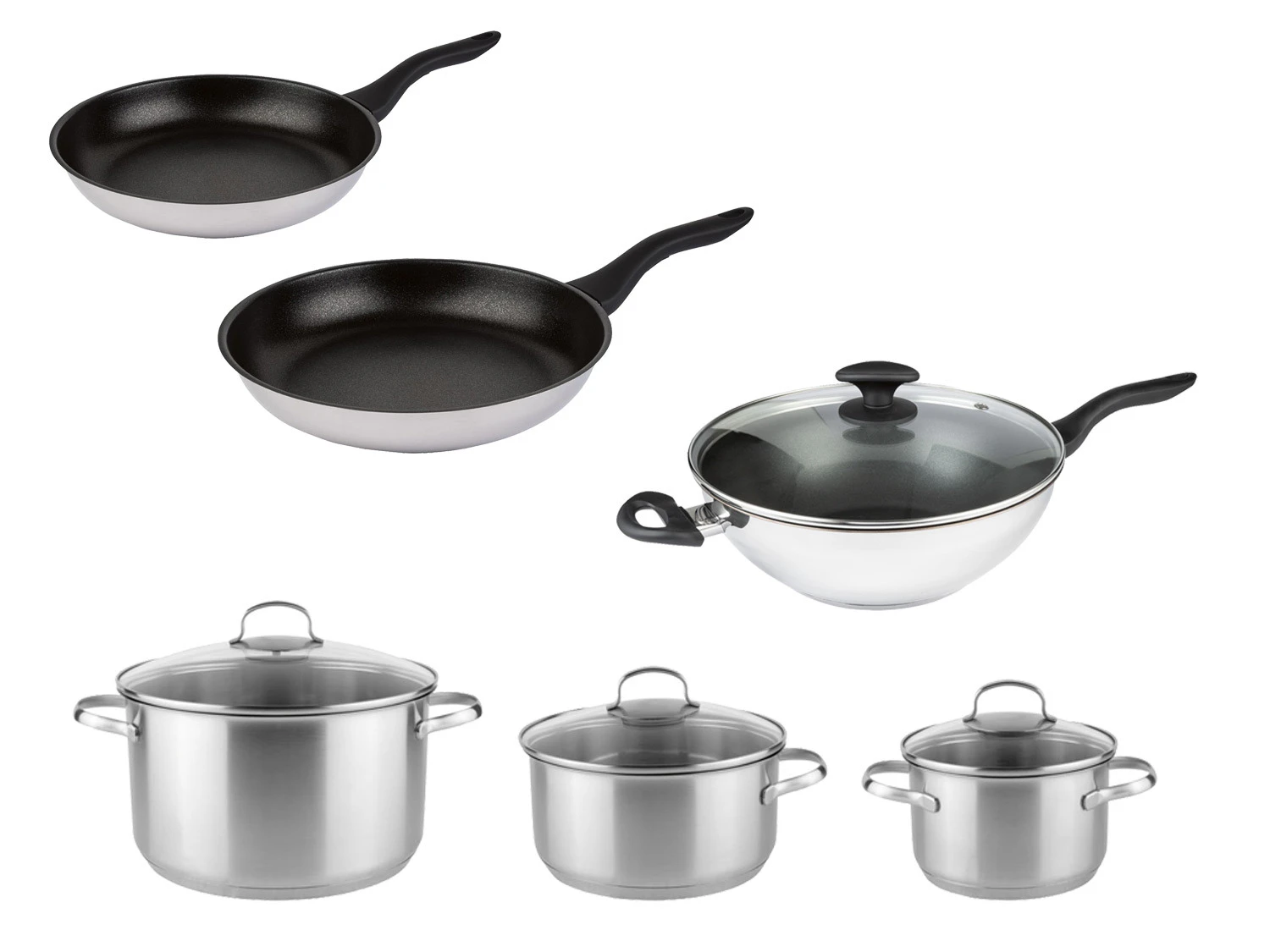 ERNESTO® Edelstahl Topf-, Wok-, Pfannen-Set