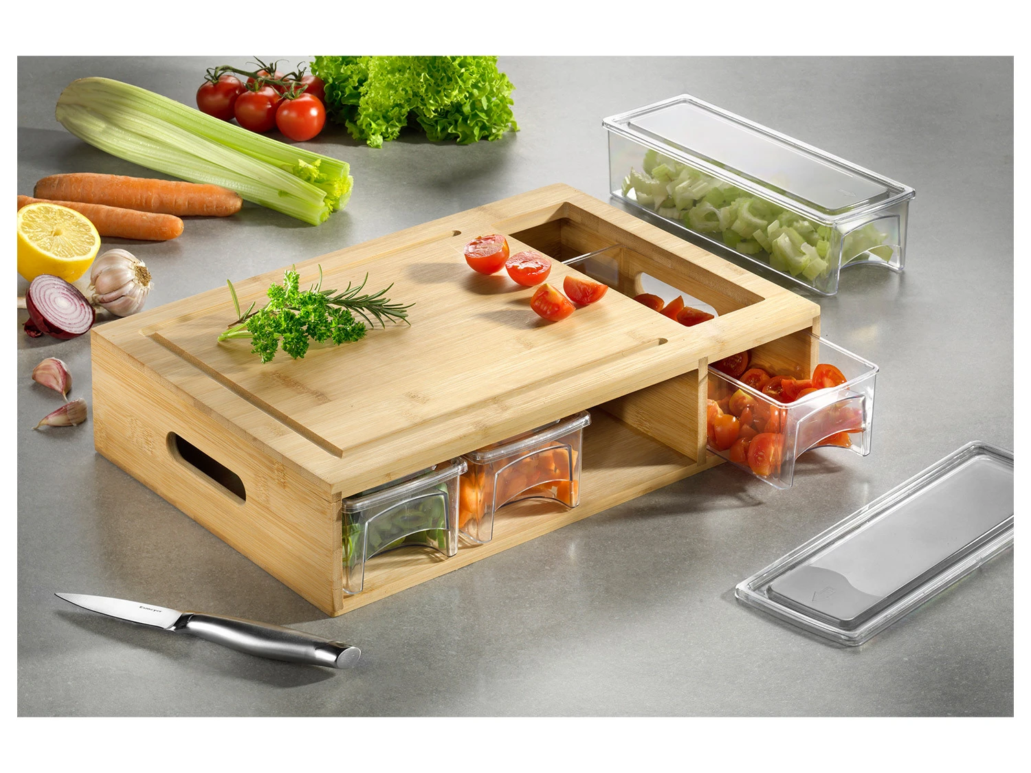 Esmeyer Schneidbrett aus Bambusholz mit 4 Acrylschubladen inkl. Deckel