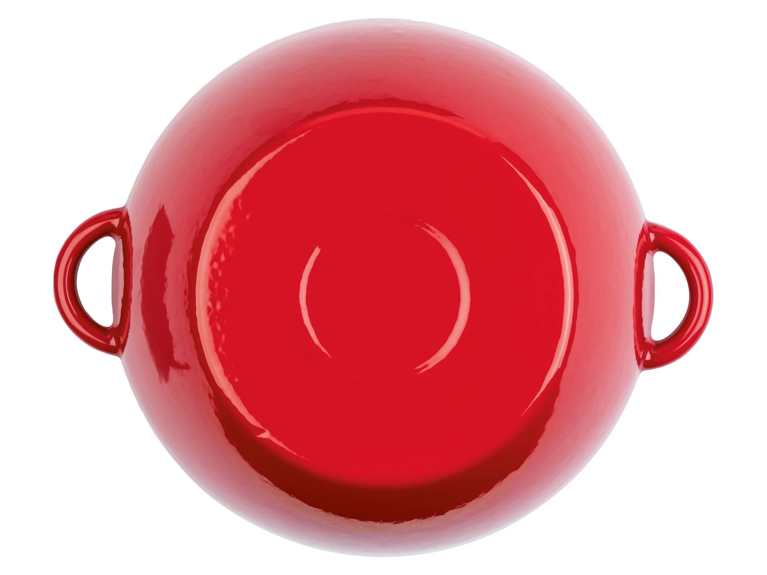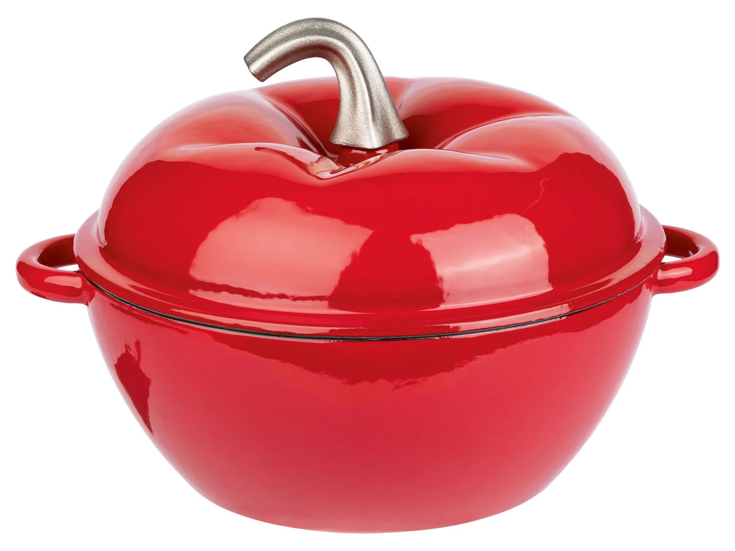 Dieser Kochtopf TOMATE ist aus schwerem Gusseisen für den lebenslangen Gebrauch gefertigt und innen beige, sowie außen farbig emailliert und überzeugt durch sein originelles Design. Der immer vorhandene, optimale Kontakt zur Heizfläche sorgt für eine gleichmäßige Wärmeverteilung und lange Wärmespeicherung auf allen Herdarten – auch auf Induktion und im Backofen.