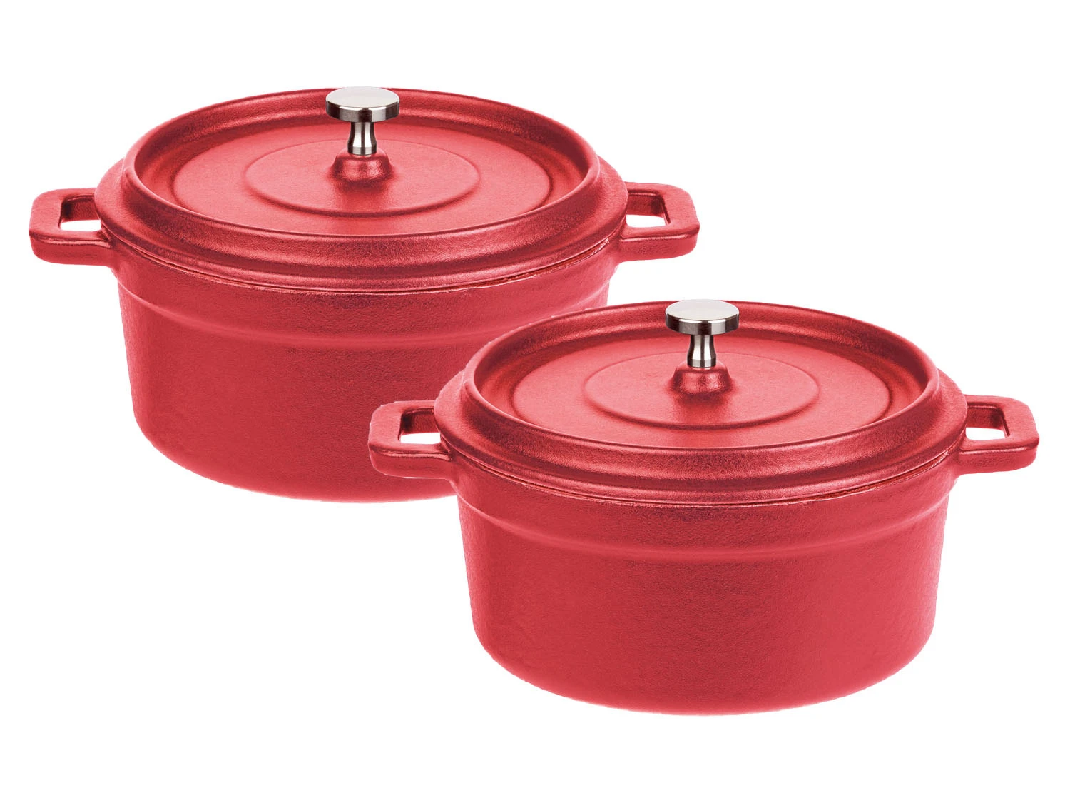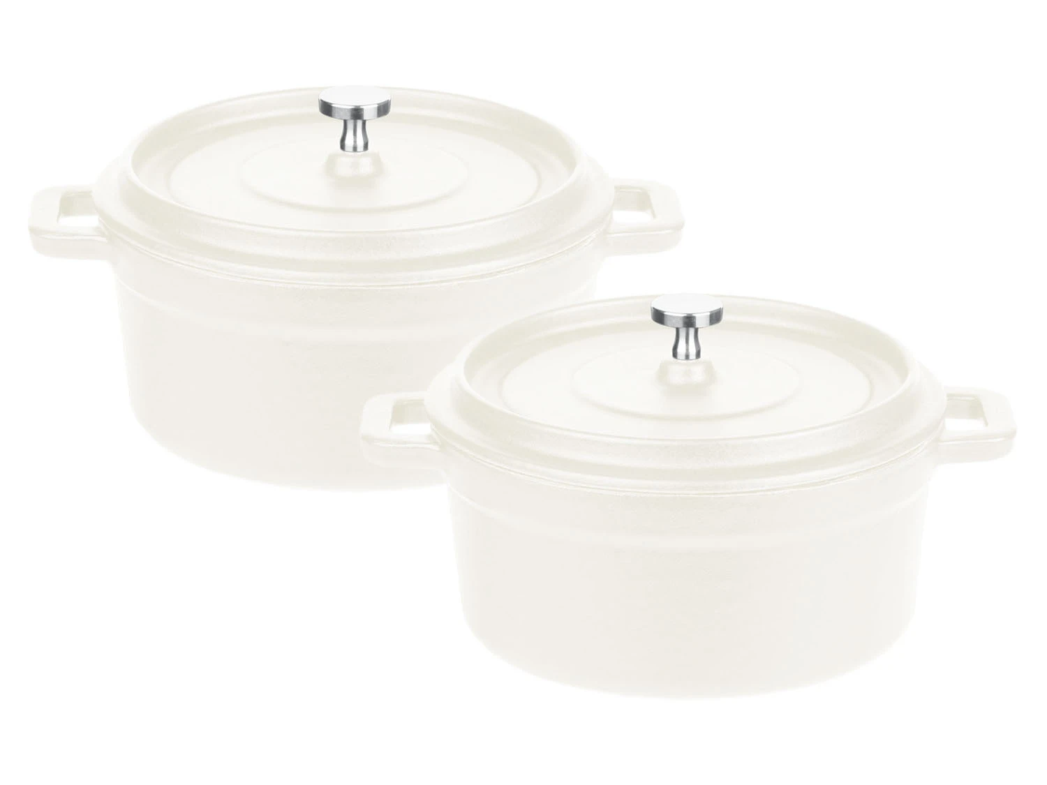 Dieses 2er Set Mini-Serviertöpfe ist aus schwerem Gusseisen für den lebenslangen Gebrauch gefertigt und innen beige, sowie außen farbig emailliert und verfügt über Deckel mit formschöner Struktur. Der immer vorhandene, optimale Kontakt zur Heizfläche sorgt für eine gleichmäßige Wärmeverteilung und lange Wärmespeicherung auf allen Herdarten – auch auf Induktion und im Backofen.