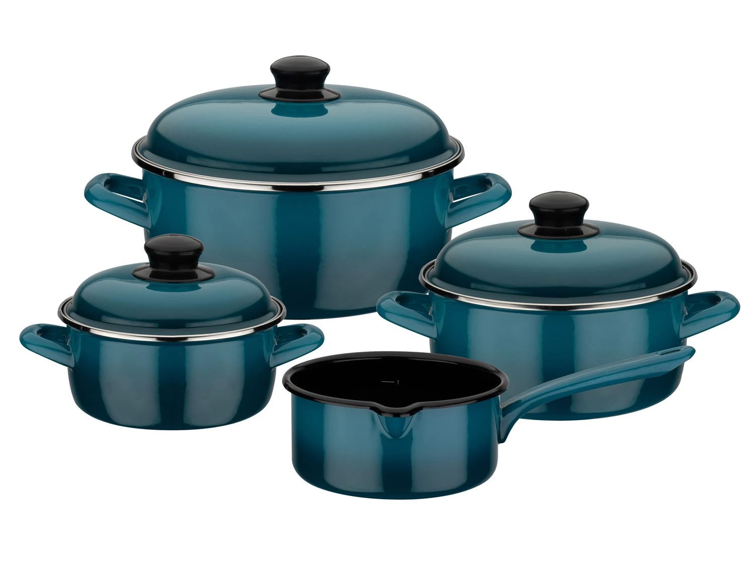 - Aus widerstandsfähigem, pflegeleichtem Stahl-Emaille