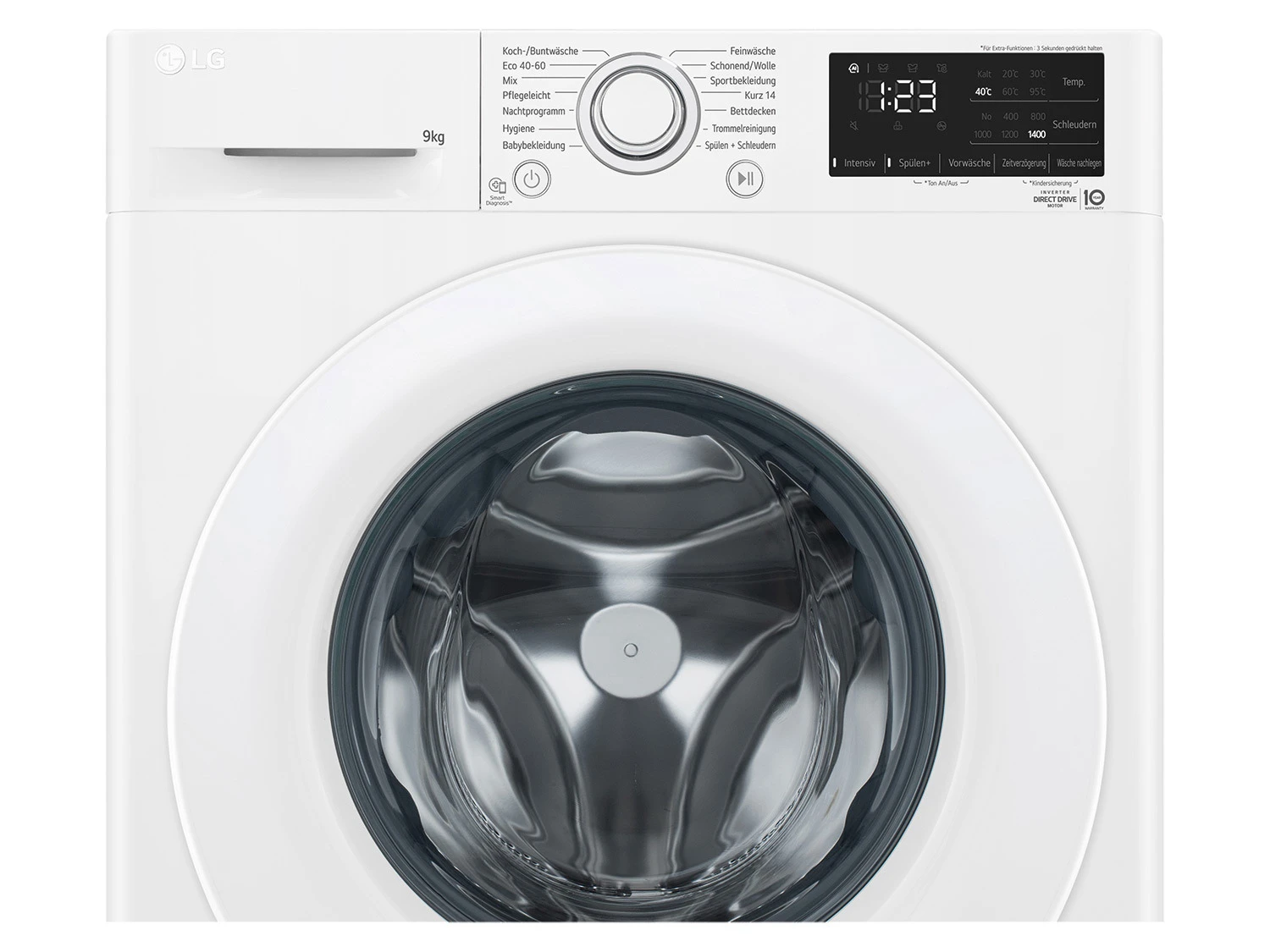 Mit der LG Waschmaschine mit 9kg Kapazität können Sie sich auf eine einfache und effektive Wäschepflege für Ihre ganze Familie freuen. Mit einer größeren Wäscheladung sparen sie Strom und Zeit.