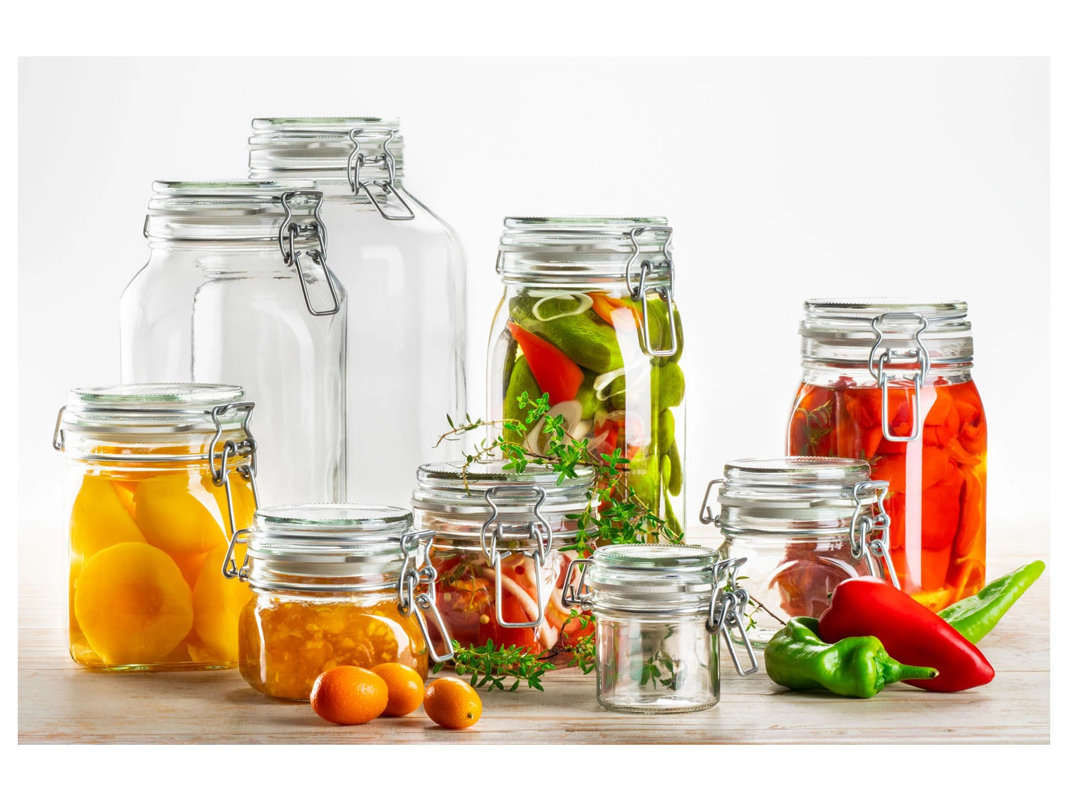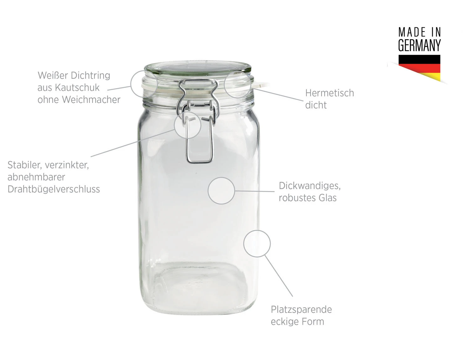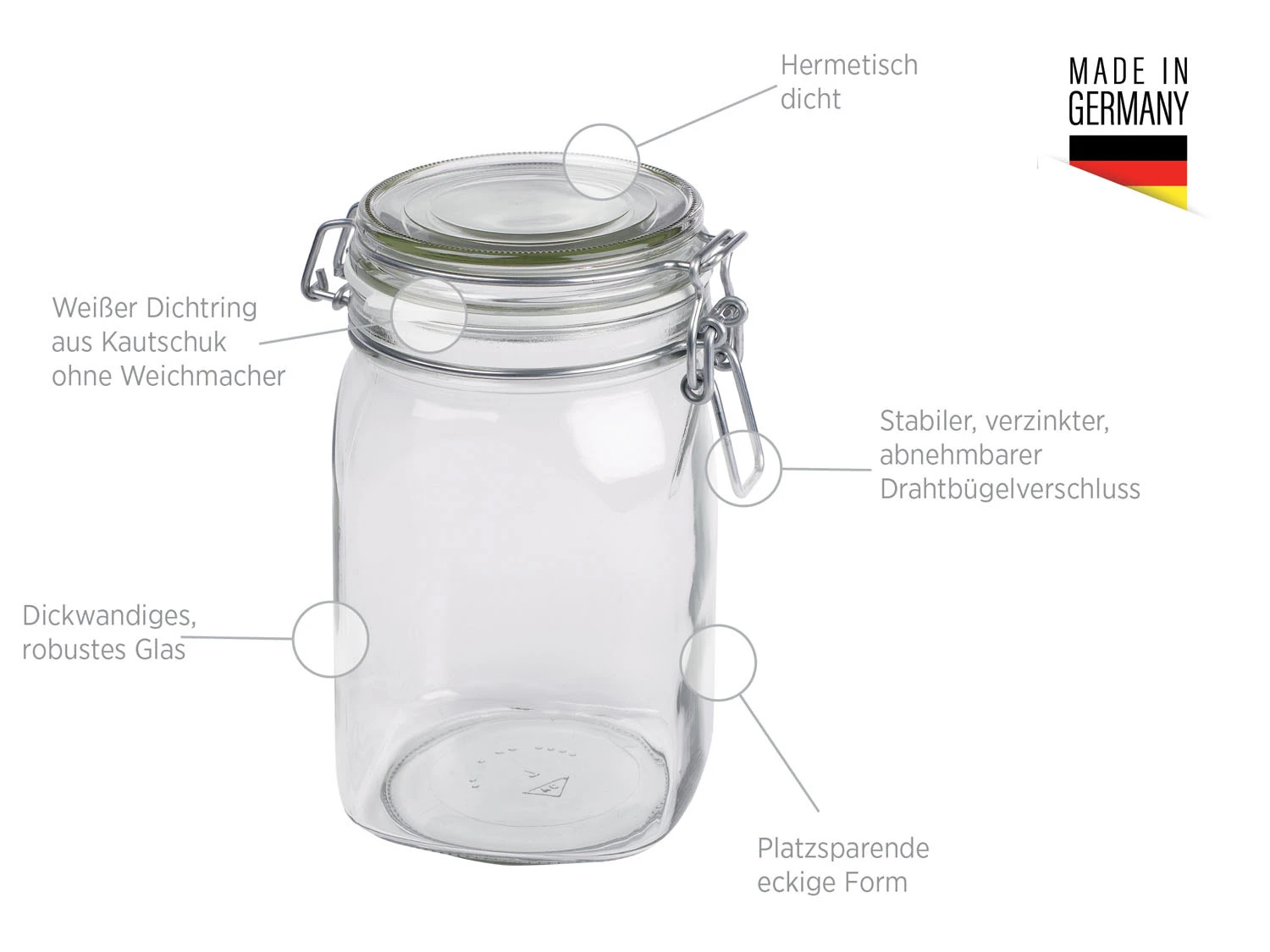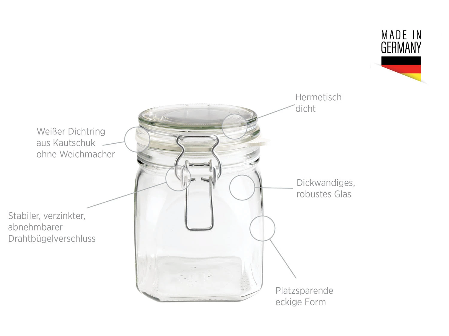 Fang die Frische ein: Mit der seit vielen Jahren beliebten, umfangreichen Einkochglas-Serie GOTHIKA der Traditionsmarke MÄSER konservierst du allerlei Arten von Obst und Gemüse – 100 % dicht und 100 % lebensmittelecht! Die robusten Einmachgläser mit ihrer charakteristischen eckigen Form und dem weißen Kautschuk-Ring ohne Weichmacheranteil sind nicht nur ideal geeignet zum Einkochen, Einmachen und Fermentieren, sondern auch zum hermetisch dichten Aufbewahren von Lebensmitteln wie Mehl, Müsli u.v.m. Aufgrund ihrer besonderen Form werden GOTHIKA Einweckgläser auch gerne zur Dekoration und zum Verschenken von selbstgemachten Köstlichkeiten eingesetzt.