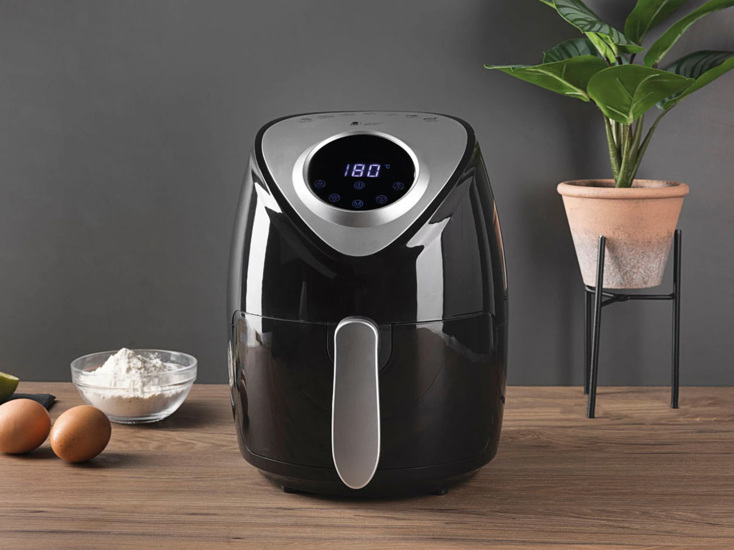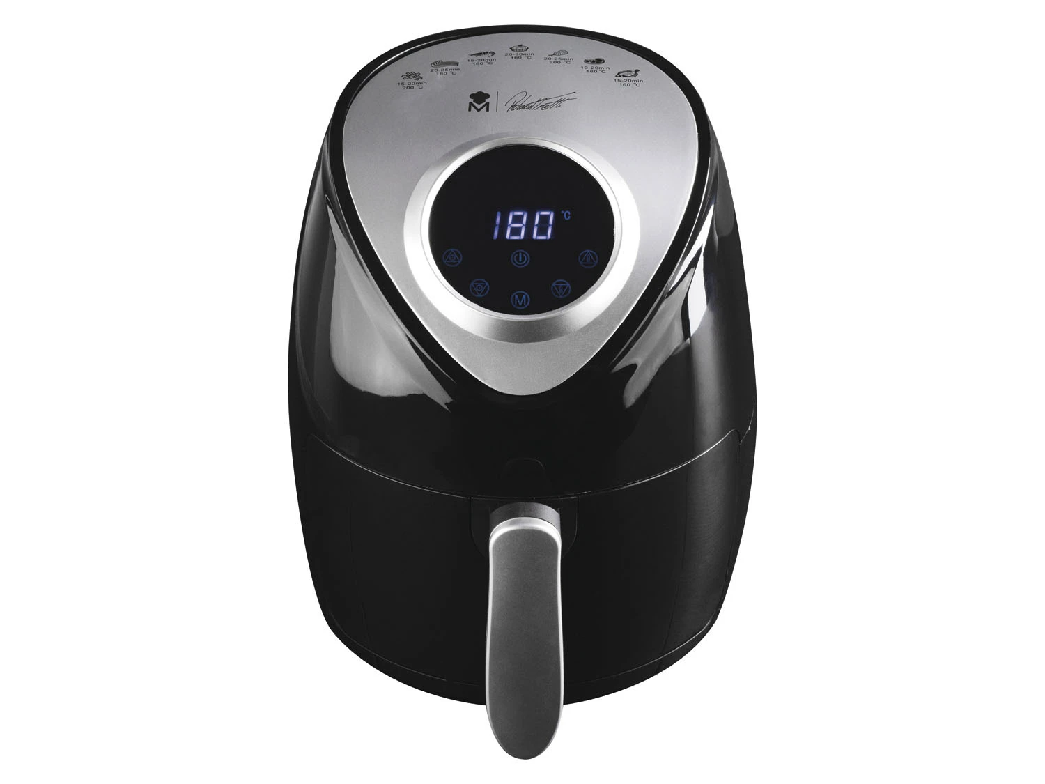 Die Heißluftfritteuse mit einem Fassungsvermögen von 2,8 l und 1000 W Leistung aus der Masterpro-Kollektion verfügt über einen abnehmbaren Behälter mit Antihaftbeschichtung, um Kartoffeln, Fleisch, Gemüse oder Fisch ohne Öl zu braten. Die Heißluftfritteuse verfügt über eine innovative Technologie, die das Kochen, Sautieren und Frittieren auf eine gesündere, fettfreie Weise ermöglicht. Die Fritteuse verfügt über einen einstellbaren Thermostat mit LED und Touchscreen, so dass du die Temperatur auswählen kannst, die am besten zu deinem Rezept passt, und garantiert die besten Ergebnisse, damit du deine Gäste beeindrucken kannst. Das Fassungsvermögen von 2,8 Litern und der abnehmbare Topf mit Antihaftbeschichtung ermöglicht es dir, mit 90 % weniger Fett zu kochen, und du erhälst knusprigere und gesündere Speisen ohne Flecken und Gerüche in deiner Küche. Ein elegantes und professionelles Design in schwarzer Farbe mit Cool-Touch-Gehäuse und einfacher Reinigung macht deine Fritteuse zur perfekten Ergänzung für jeden Küchenstil.