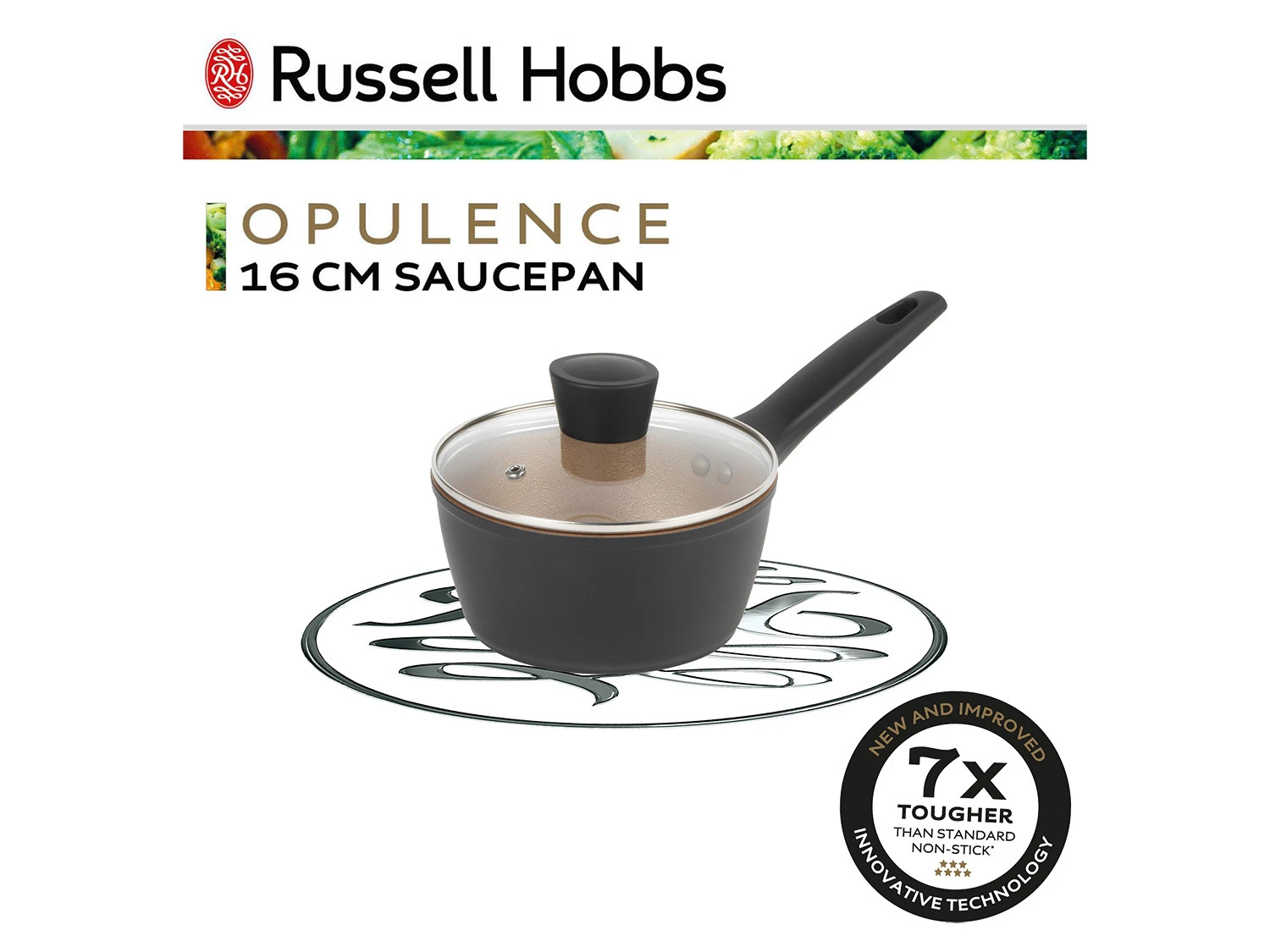 - Die Russell Hobbs® 16 cm / 18 cm / 20 cm Aluminium Stielkasserolle aus der Opulence Colletion ergänzt deine Kochgeschirrsammlung ideal und ermöglicht das Kochen mit wenig bis gar keinem Öl.