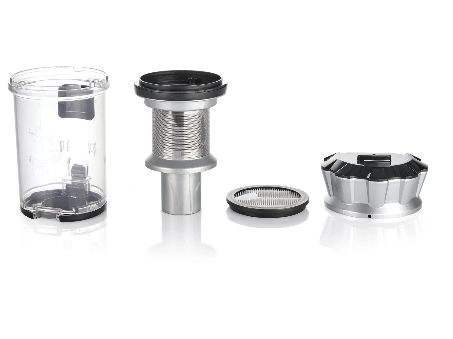 - Werkzeuglose Demontage des Gerätes zur leichten Reinigung und einfachen Entleerung des entnehmbaren Staubbehälters