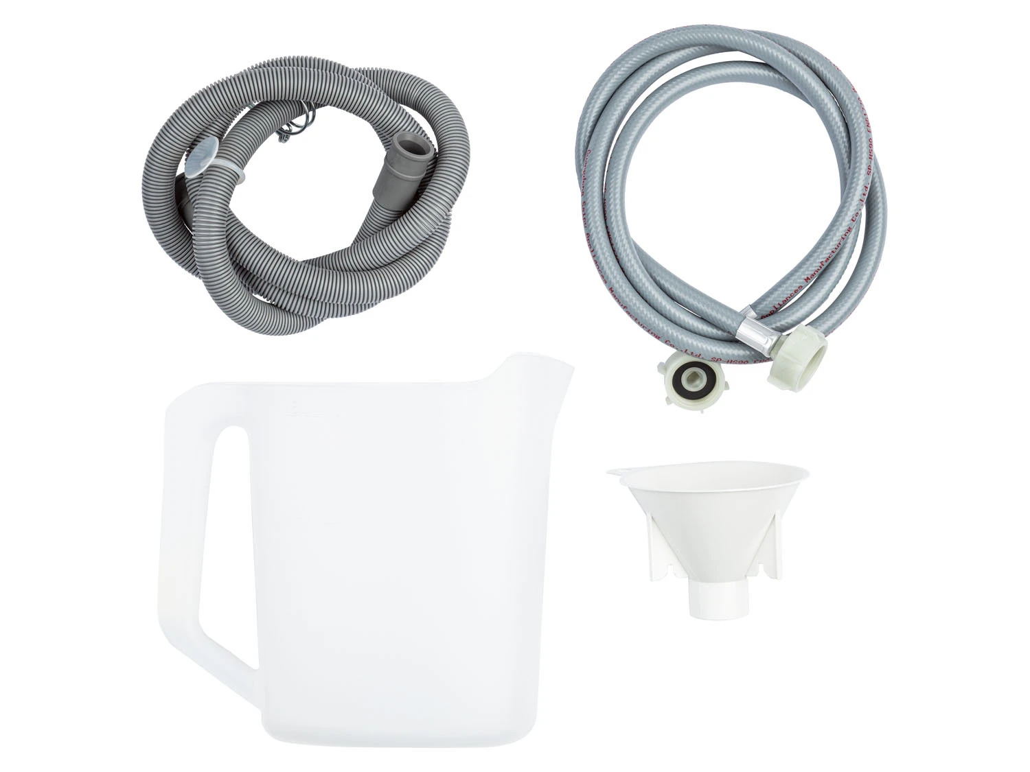 - Enthaltenes Zubehör: Wasserbecher, Anschlussschlauch, Abflussschlauch, Trichter
