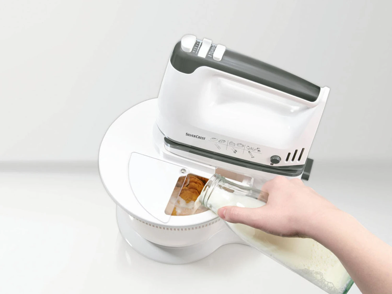 - Spülmaschinengeeignet sind Geräteständer, Rührschüssel, Rührbesen, Knethaken, Teigschaber