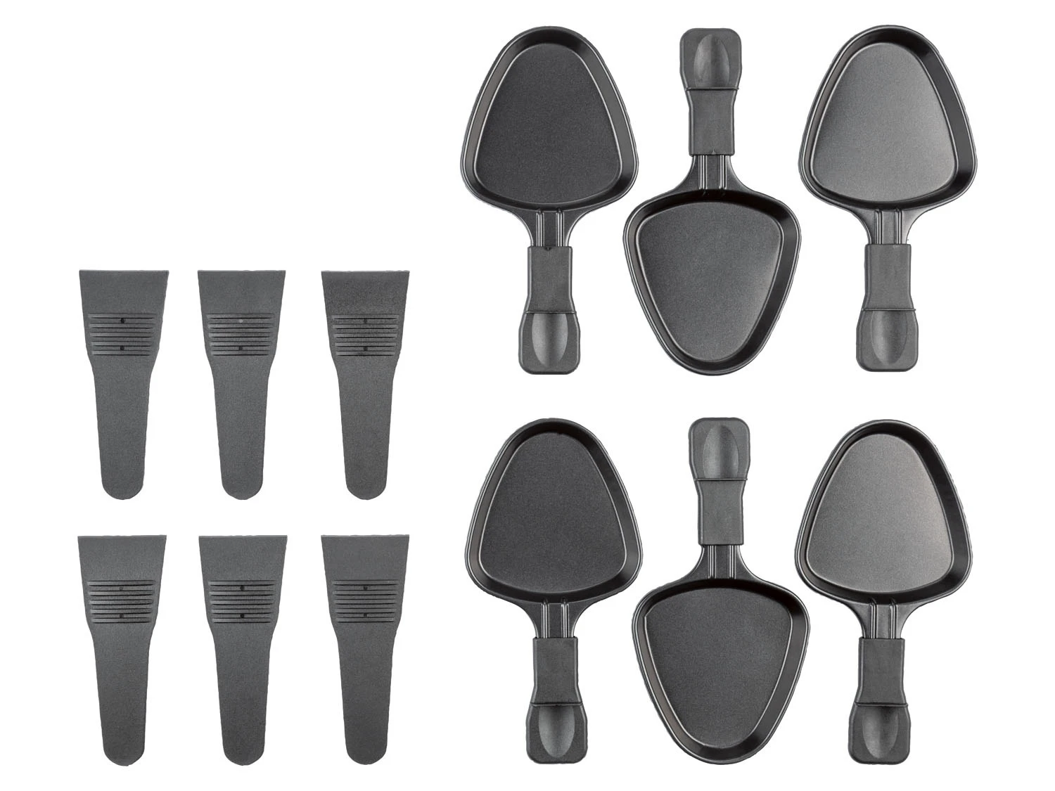 Enthaltenes Zubehör: 6x antihaftbeschichteten Pfännchen, 6x Kunststoffspateln