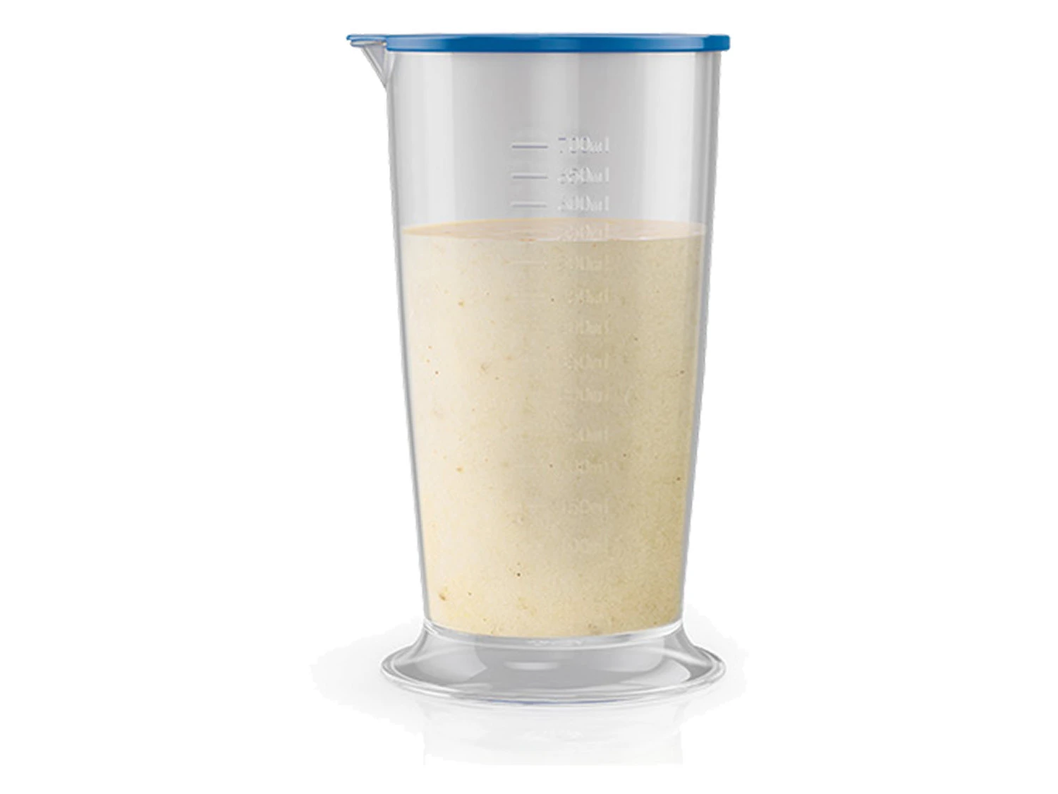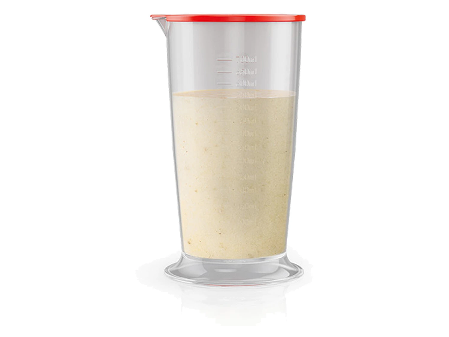 - Messbecher mit 700 ml Nutzvolumen, Skala zum Abmessen des Inhalts und praktischem Deckel