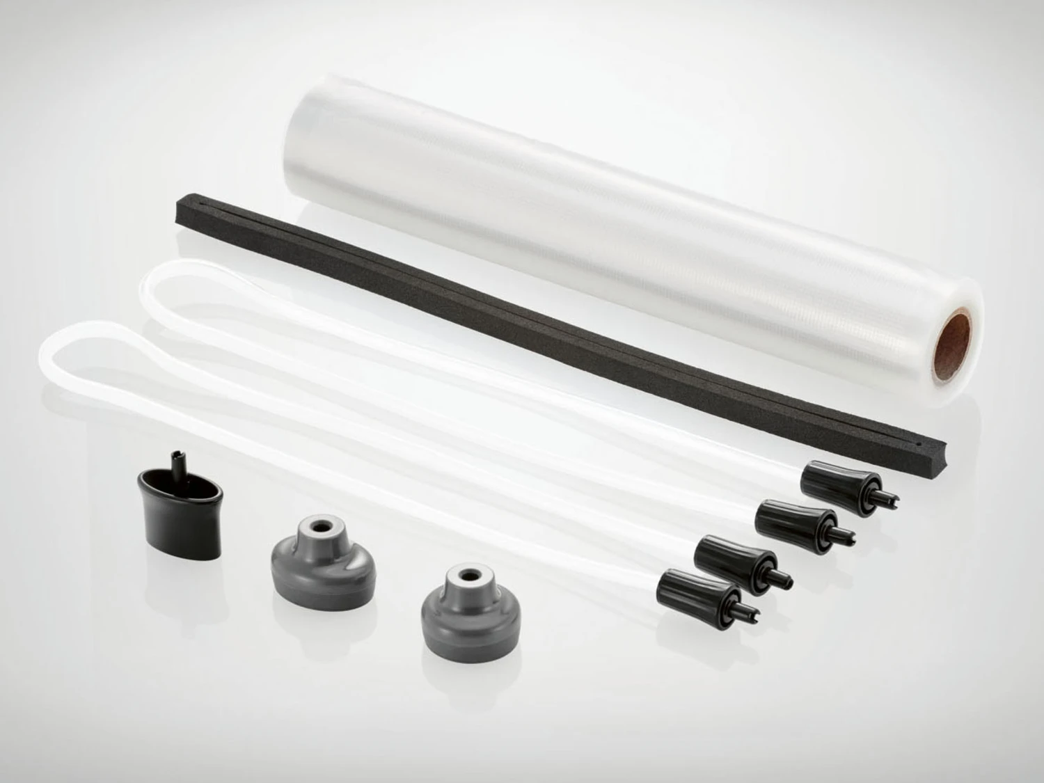 - Inkl. Ersatzdichtung, 3-m-Folienrolle und 3 Vakuum-Ventil-Adpatern