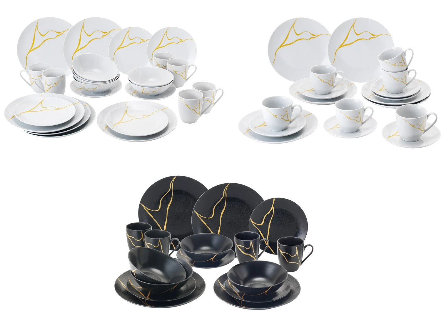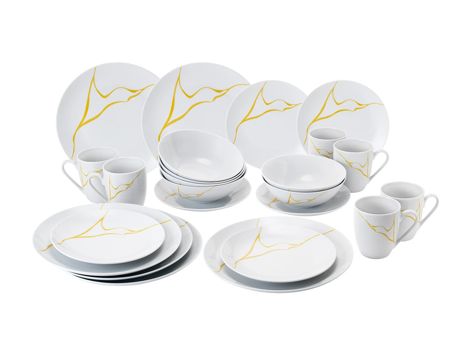 Kombiservice 24 tlg. „Noble“, rund coupe Form, weiß mit einem goldfarbenen Dekor, Porzellan, im braunen Karton/zusätzlicher Außenkarton