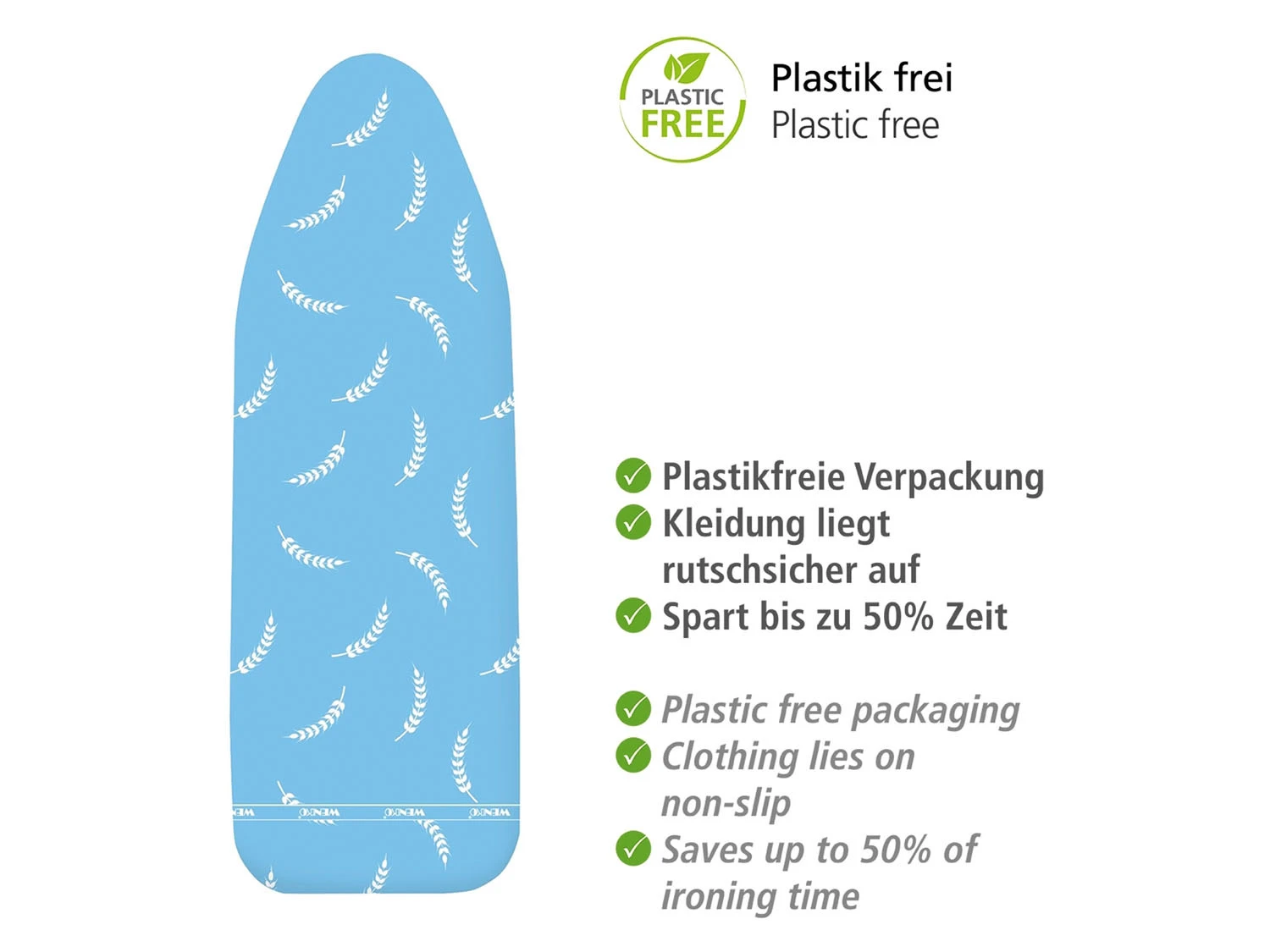 Die integrierte 3-fach Komfortpolsterung mit dicken Schaumstofflagen und Moltonpolster in Kombination mit der hitzereflektierenden Aluminiumschicht ermöglichen einen Gegenbügeleffekt, der Zeit und Strom spart.